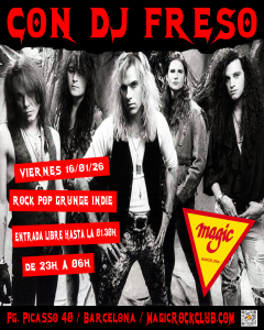 ¡Ven a MAGIC la noche del viernes y empieza el finde de la mejor manera con DJ FRESO! Sumérgete en el mejor ambiente rockero de la ciudad y revive los mejores temas de Rock, Punk & Indie de todos los tiempos.