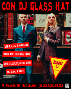 Este viernes vuelve el auténtico espíritu del Rock & Roll a Sala MAGIC. DJ Glass Hat tiene la fórmula secreta para encender la noche: la mezcla perfecta de Rock & Punk para que no pares de bailar con los mejores hits de todos los tiempos.