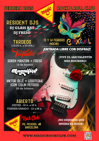 Relive the authentic spirit of Rock & Roll this Carnival at Sala MAGIC. DJ Freso has the secret formula to set the night on fire: the ultimate blend of Rock & Punk to keep you moving to the greatest hits in history.